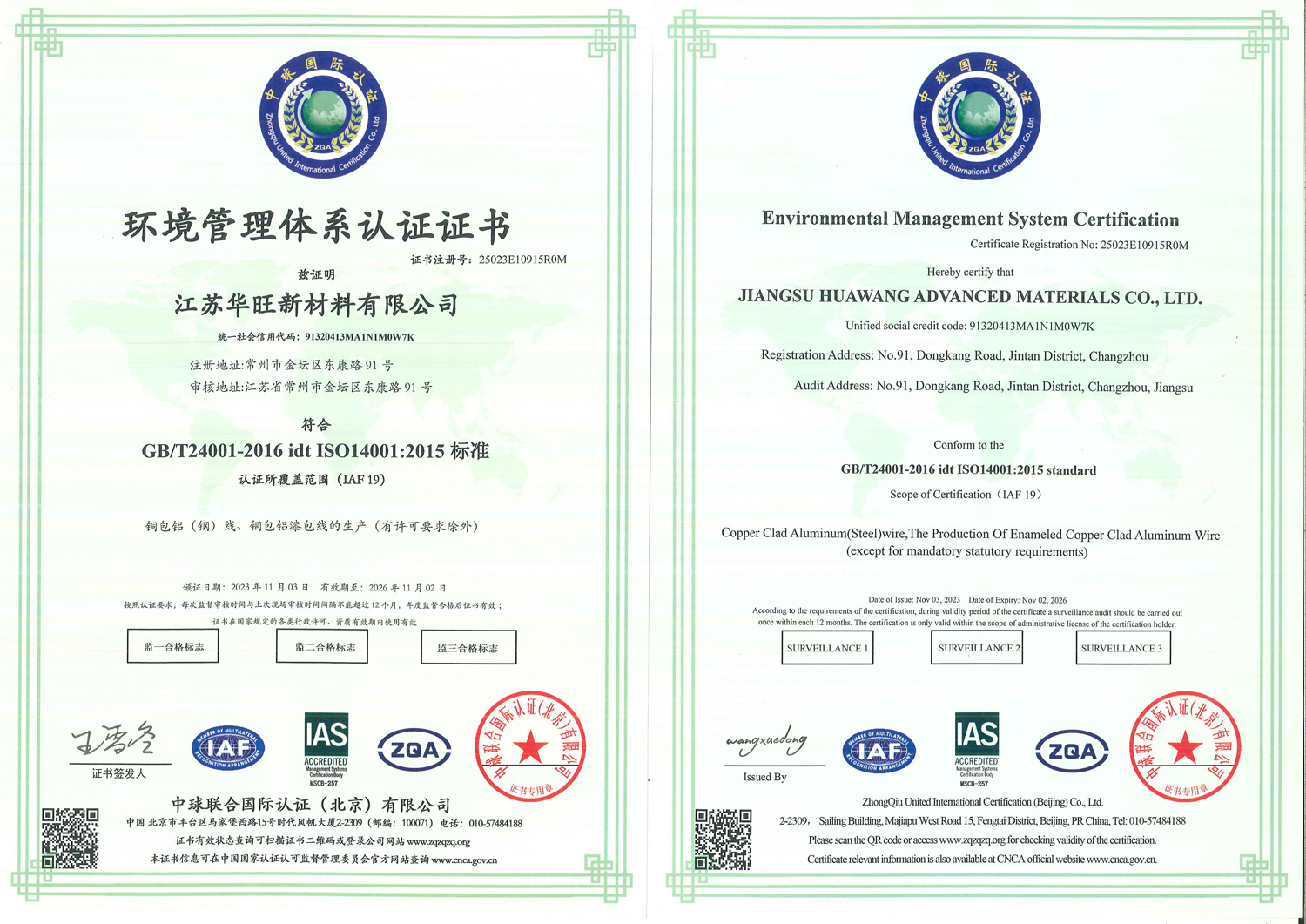 产品名称:环境管理体系认证证书